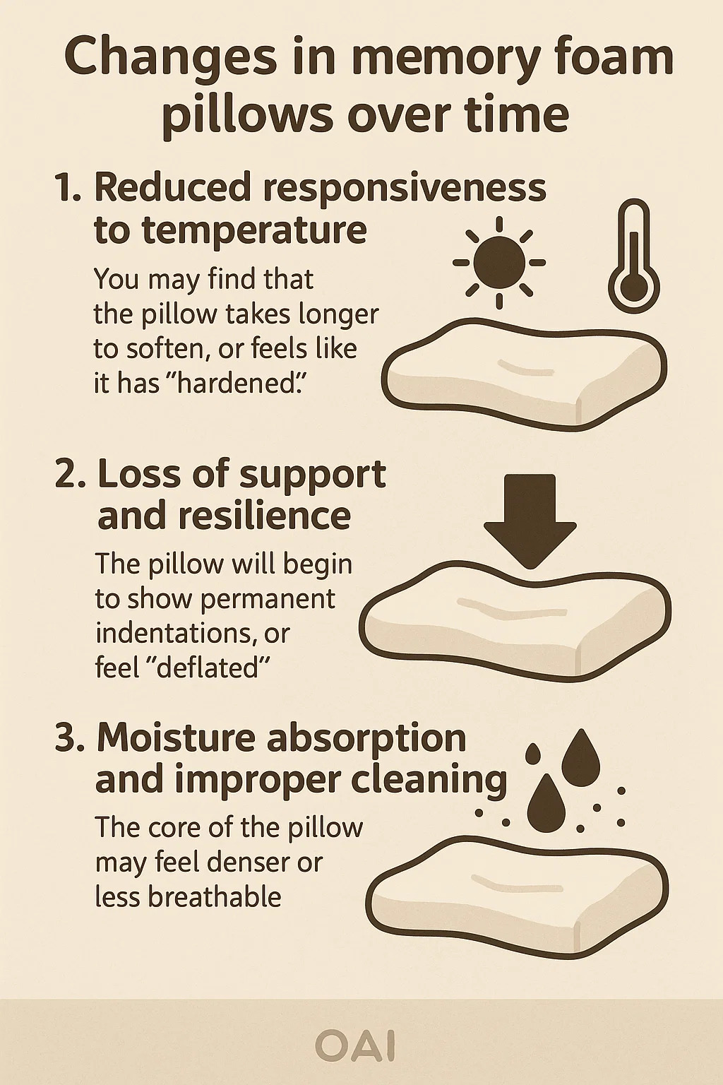 Ak je vankúš vyčistený nesprávne (napr. priamo v práčke) alebo je dlhší čas v prostredí s vysokou vlhkosťou, môže táto vlhkosť a nečistoty ovplyvniť vnútornú štruktúru pamäťovej peny.