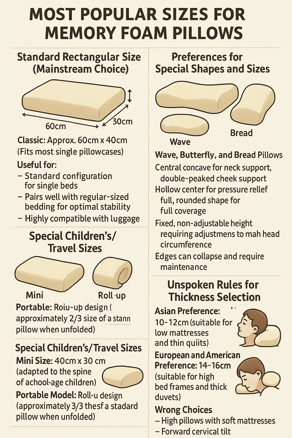 Nasleduje rozpis najobľúbenejších veľkostí pre pamäťové penové vankúše :